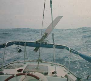 July 1973 : Purchased present boat, named also Jean-du-Sud (Alberg 30 hull no. 399) and fitted it with a self-steering system designed and built by Y.G. (with horizontal axis vane and auxiliary rudder).