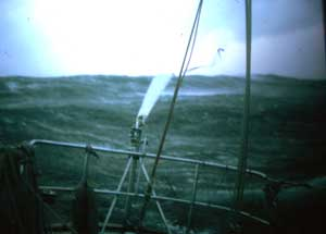 Feb. 15, 1982 : Jean-du-Sud was capsized through 360° and dismasted in the Pacific. Reached Chatham Islands under jury rig after 169 days at sea. Flew back to Montréal to finish the editing of the film narrating the first leg of the voyage.