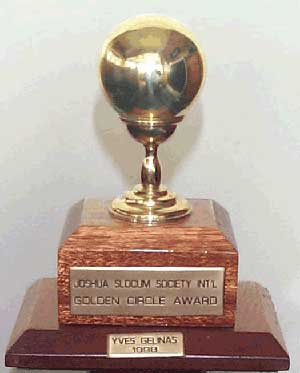 Summer 1998 : JdS hauled to Newport RI to participate in the commemoration of the Joshua Slocum Centennial. Yves Gélinas receives the Golden Circle Award from the Joshua Slocum Society International.